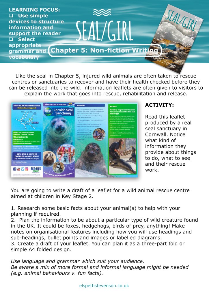 The second sheet that accompanies the study of Chapter 5 can again be used on its own, or as a follow-up to the previous one. It also has its own research task if you’d like to combine the two skills covered by both Chapter 5 activities. A full PDF copy of the charity’s promotional leaflet has been attached to the end of the worksheet for easier viewing.